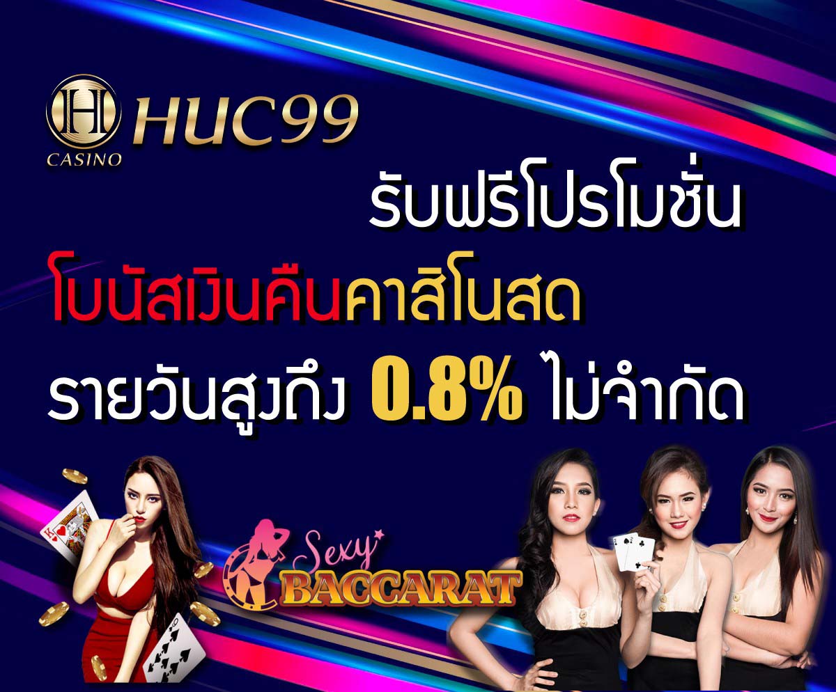 HUC99 รับฟรีโปรโมชั่นโบนัสคืนยอดเสีย คาสิโนสดรายวันสูงถึง 0.8% ไม่จำกัด
